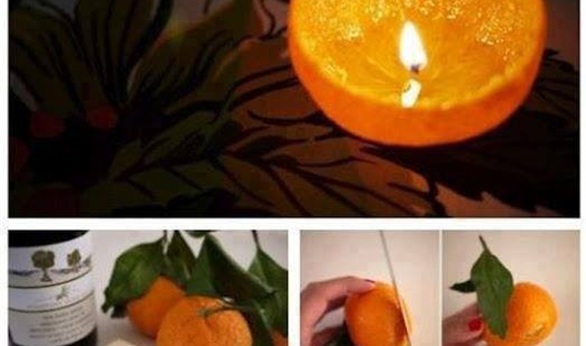 اقطعي البرتقالة او الليمونة وفرغيها بحيث تكون مفرغة من الداخل وضعي نقطه من الكحول بها خيط وعند اشعال طرف الخيط ستضئ البرتقالة أو الليمونة .