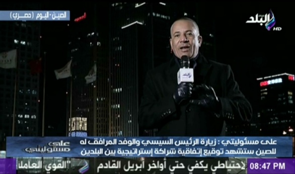 وأضاف موسى خلال برنامج " على مسئوليتى"، فى حلقة يقدمها من الصين على قناة "صدى البلد"، أن الزيارة ستشهد توقيع اتفاقية شراكة استراتيجية بين البلدين، مشددا على أن شبكة "صدى البلد" قناة وموقع، ستقوم بتغطية أنشطة الرئيس فى بكين من خلال وفد إعلامي على أعلى مستوى من مسئولي القناة والموقع.