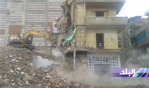 بالصور.. استمرار إزالة العقار المنهار بالمحلة