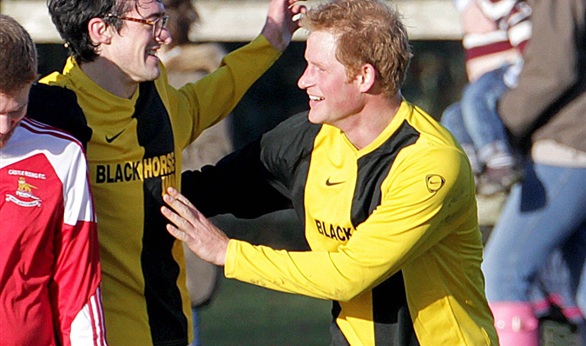 الأمير هاري حفيد ملكة بريطانيا الملكة إليزابيث الثانية معروف بحبه للرياضة وللمنافسة، وهو ما ظهر بوضوح خلال لعبه لمباراة كرة القدم بين عمال ساندرينجهام وقرويين من كاستل ريسينج في نورفولك.