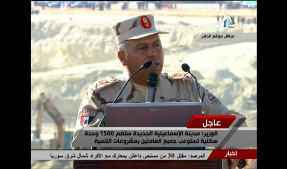 وأشار إلى أنه سيتم إنشاء مدينة الاسماعلية الجديدة في شرق قناة السويس الجديدة، حيث تحتوي علي 1500 وحدة سكنية تستوعب جميع العاملين بمشروعات التنمية المحورية، وتشمل الخدمات اللازمة للمواطنين من مدارس ومستشفيات وحضانات ومنشآت حكومية، مؤكدا أنها ستكون بسواعد مصرية ومعدات مصرية100%.