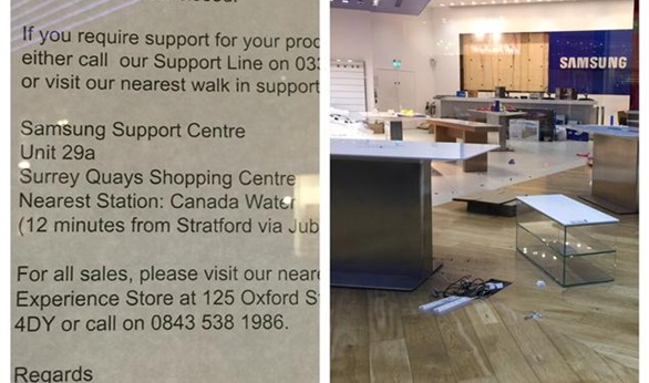 ونشر أحد زوار المتجر ويدعى "نجيب خان" عبر حسابه الخاص على تويتر، صور للمتجر المغلق، وقد وضعت عليه لافته اعتذار من قبل إدارته، والتي تحمل توقيع سامسونج.