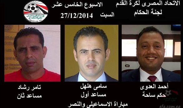 الإسماعيلى والنصر.. أحمد العدوى ويعاونه سامى هلهل وتامر رشاد .. ومحمد عباس شاهين حكما رابعا