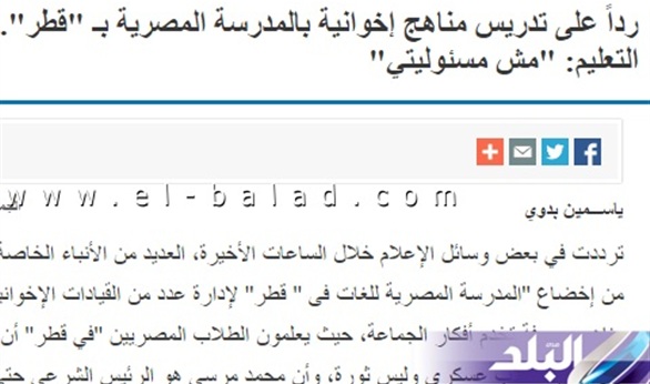 جدير بالذكر أنه في أكتوبر الماضي كان أولياء أمور الطلاب المصريين في قطر استغاثوا بالمسئولين في مصر وشكوا من إخضاع "المدرسة المصرية للغات فى قطر لإدارة عدد من القيادات الإخوانية الهاربة، وتدريس مناهج محرفة تخدم أفكار الجماعة، حيث يعلمون الطلاب المصريين في قطر أن ما حدث فى مصر فى 30 يونيو انقلاب عسكري وليس ثورة، وأن محمد مرسي هو الرئيس الشرعى حتى الآن، وكان رد الوزير: "مش مسئوليتي".