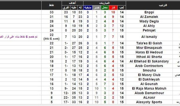 ويواصل انبى صدارة الدورى برصيد 33 نقطة فيما حل الزمالك بمركز الوصيف بـ 31 نقطة قبل خوض مباراته اليوم الاثنين امام دمنهور.