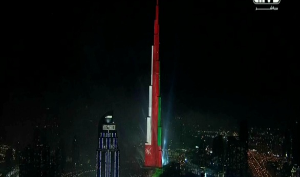 زينت أعلام دول مجلس التعاون الخليجى برج خليفة فى إمارة دبى خلال احتفالات رأس السنة التى شهدتها دبى حيث تم وضع أعلام دول السعودية والكويت والبحرين وقطر وعمان بالإضافة إلى دولة الإمارات خلال الاحتفالات.
