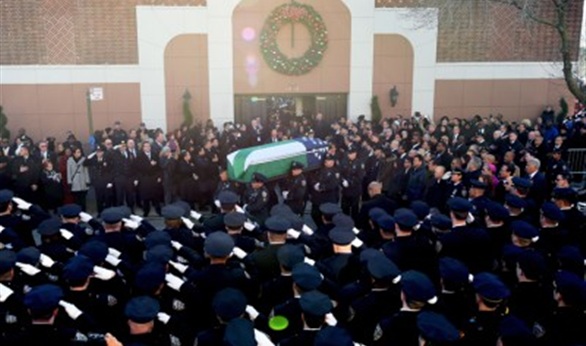 عشرات الآلاف من رجال الشرطة يحضرون جنازة شرطي من نيويورك قتل الشهر الماضي