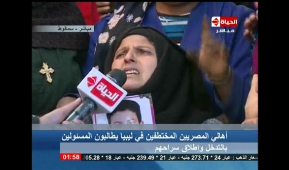 طالبت والدة أحد المصريين المختطفين في ليبيا يسمى "أبنوب"، الرئيس عبد الفتاح السيسي التدخل لإنقاذ ابنها، وباقي المختطفين.