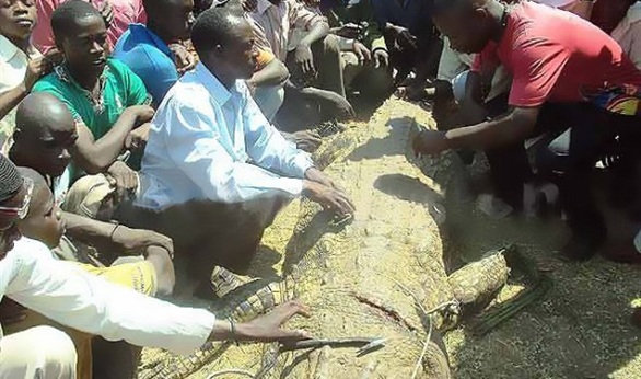 وقال بيتر اوجوانج المسئول بهيئة الحياة البرية الأوغندية: ”أرسلت رجالي هناك وعثروا على عظام بشرية وملابس في معدة التمساح،