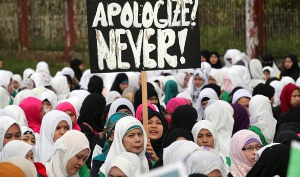 خرج العديد من الفلبينيين للتظاهر احتجاجا على العدد الجديد لصحيفة "شارلى ايبدو" الفرنسية الساخرة، بعد أن نشرت على غلافها صورة مسيئة للرسول، فى أول عدد يصدر لها بعد الهجوم عليها، كما قاموا باحراق العدد الجديد من الصحيفة.