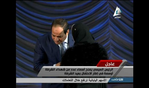 وجهت السيدة فتحية المقرحي، زوجة الشهيد عبد الرؤوف الصيرفي، الشكر للرئيس عبد الفتاح السيسي على تكريمه لاسم زوجها خلال الاحتفال بعيد الشرطة اليوم، وقالت: "الرئيس السيسي هو بدل جوزي، وهو أب لأبناء الشهداء كلهم".