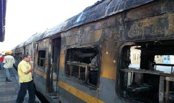 "تيل الفرامل " يتسبب في حريق العربة الثالثة بقطار المناشى في إيتاى البارود