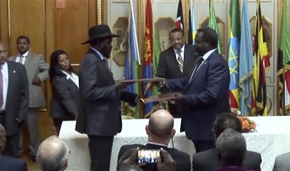 وقع زعماء الفصائل المتناحرة في جنوب السودان بمدينة أروشا التنزانية اتفاق سلام بحضور عدد من القادة الإقليميين بهدف إنهاء الحرب الأهلية الدائرة في البلاد.
