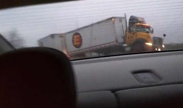 أبدى سائق سيارة فضولا إزاء شاحنة وقفت في عرض أحد الطرق السريعة، وراح يوثق هذه اللحظة، لكنه حول الكاميرا فجأة للخلف ليصور شاحنة مسرعة تخرج عن مسارها وتحطم الحاجز الفاصل بين شارعين.