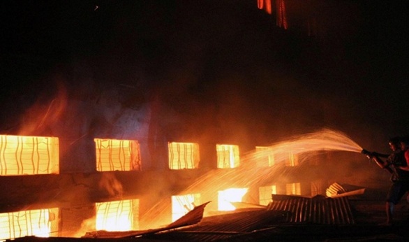 حريق هائل بمصنع منسوجات يمتد لمنزلين مجاورين وسط انفجار اسطوانات غاز.. واصابة 5 عمال