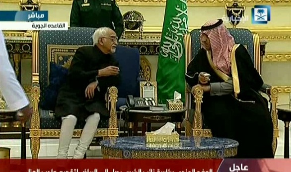 وصل نائب الرئيس الهندي إلى مدينة الرياض حيث استقبله الأمير تركي بن عبد الله أمير الرياض، لتقديم واجب العزاء فى وفاة الملك عبد الله بن عبد العزيز.