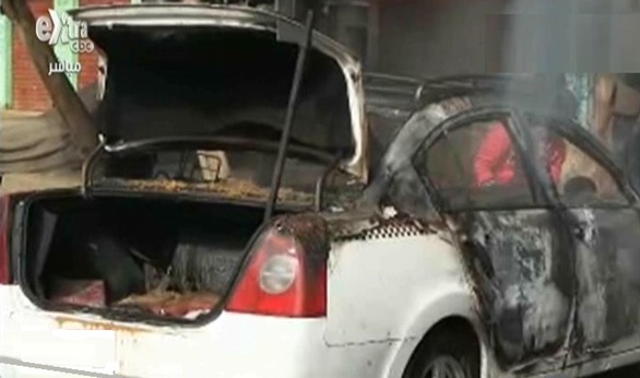 أشعل العشرات من الإخوان المسلمين في ميدان المطرية، النيران في سيارة أجرة، وذلك بعد إطلاقهم الألعاب النارية على قوات الأمن، فاصطدم شمروخ بخزان الوقود الخاص بالسيارة أثناء مرورها بالصدفة في الميدان، ما أدى لاشتعالها بالكامل.