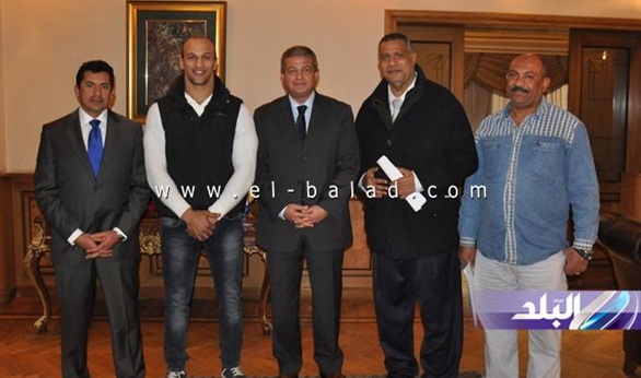 عبدالعزيز يستقبل رئيس اتحاد المصارعة وكرم جابر
