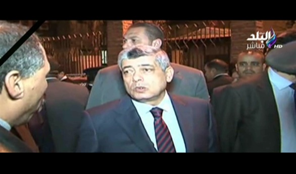 عرض الإعلامي أحمد موسي - خلال برنامج "علي مسئوليتي" المذاع علي قناة "صدى البلد" - لحظة وصول اللواء محمد إبراهيم وزير الداخلية، إلي المطرية؛ لتفقد الأوضاع الأمنية بالمنطقة وسط جنود وضباط الشرطة.