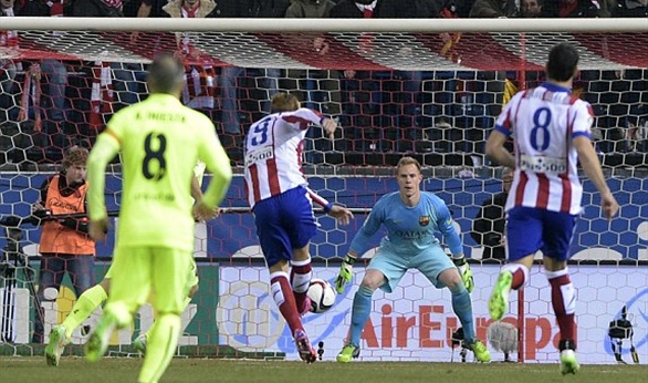 افتتح أصحاب الأرض التسجيل في الدقيقة الأولى من اللقاء عن طريق فيرناندو توريس، ولكن نيمار داسيلفا تعادل سريعا في الدقيقة التاسعة، ولكن راؤول جارسيا عاد وتقدم لنادي العاصمة في الدقيقة الثلاثين من ركلة جزاء، وفي الدقيقة الثامنة والثلاثين أحرز جواو ميراندا لاعب أتليتكو هدفا بالخطأ في مرمى فريقه، قبل أن يعود نيمار داسيلفا ويتقدم للبرشلونة من هجمة مرتدة سريعة انتهت عند البرازيلي الصاعد ليحرز منها الهدف الثالث الرائع في الدقيقة الحادية والأربعين.