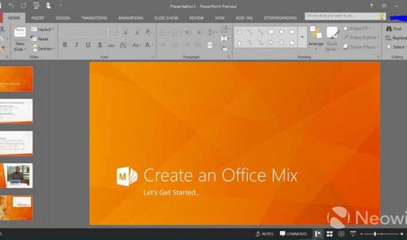 نشر موقع Neo Win الأمريكي، المتخصص في نشر كل ما يتعلق ببرمجيات شركة مايكروسوفت، صورة مسربة من برنامج باور بوينت الخاص بحزمة مايكروسوفت أوفيس 2016 القادمة.