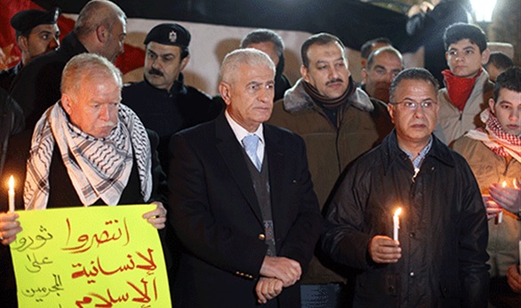 وأضاء المشاركون في الوقفة الشموع تضامنا مع عائلة الكساسبة بشكل خاص، والشعب الأردني بشكل عام، مؤكدين أن ما حدث جريمة نكراء لا تمت للإسلام والإنسانية بصلة.