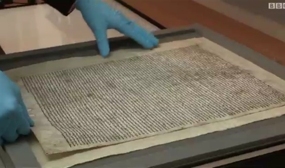 نظمت المكتبة البريطانية في لندن احتفالا بالذكرى الـ 800 لوثيقة" ماجنا كارتا " وهذه هى النسخة الأصلية الأربع للوثيقة، التي تعود إلى عام 1215، وأرست أسس الديمقراطية في بريطانيا.