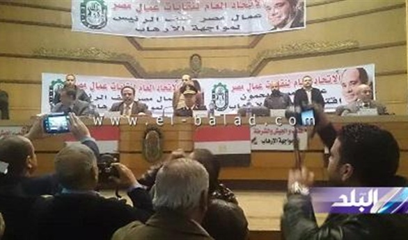 بالصور.. في ختام مؤتمرهم.. عمال مصر يبعثون رسالة إلى «السيسي» للقضاء على الإرهاب