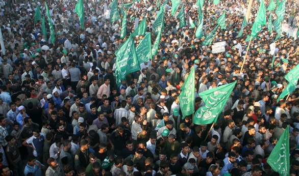 تجمع المئات من عناصر حركة "حماس" أمام مقر السفارة المصرية في مدينة غزة اليوم، الجمعة، في اعتصام دعت له الحركة للتنديد بقرار محكمة مصرية اعتبار كتائب عز الدين القسام، الجناح العسكري لحماس، جماعة إرهابية.