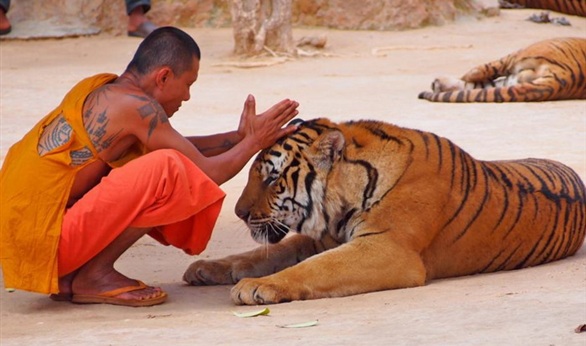 ويحظى معبد النمور الذي يطلق عليه "وات با لوانج تا بوا" ويقع في اقليم كانشانابوري بغرب تايلاند بشعبية لدى السياح الذين يربتون على الحيوانات ويعانقونها ويلتقطون صورا معها.