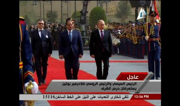 واستعرض الرئيسان المصري والروسي بوتين حرس الشرف قبل بدء المباحثات الرسمية.
