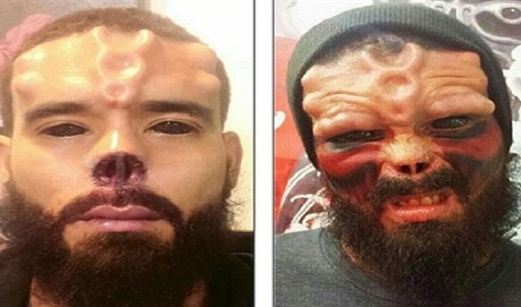 أقدم مواطن فنزويلي من كاراكاس على تشويه وجهه إلى أقصى الدرجات، عن طريق وشومات غريبة بالوجه، والتي حولته إلى اللونين الأحمر والأسود، مع قطع أنفه ليتقمص شخصية المسخ الشرير في الفيلم السينمائي "كابتن أمريكا".