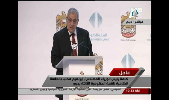 قال المهندس إبراهيم محلب، رئيس مجلس الوزراء: "يسعدني أن أكون بينكم في دبي، دبي مدينة السعادة والرخاء والأمن والأمان، لحضور فعاليات مؤتمر الحكومات السنوي، ولأتحدث معكم عن تجربة مصرية، تجربة شعب استشرف المستقبل، وحكومة تلبي طلب هذا الشعب".