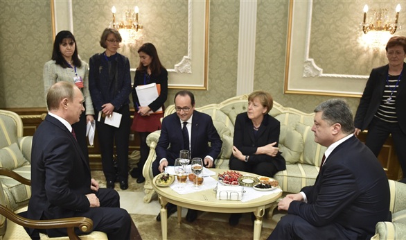 بدأت مباحثات زعماء دول "رباعية نورماندي"، روسيا فلاديمير بوتين وألمانيا أنجيلا ميركل وفرنسا فرانسوا هولاند وأوكرانيا بيترو بوروشينكو، في مينسك حول الأزمة الأوكرانية.