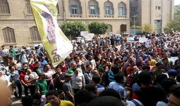 طلاب الإخوان يشعلون الشماريخ أمام تجارة القاهرة