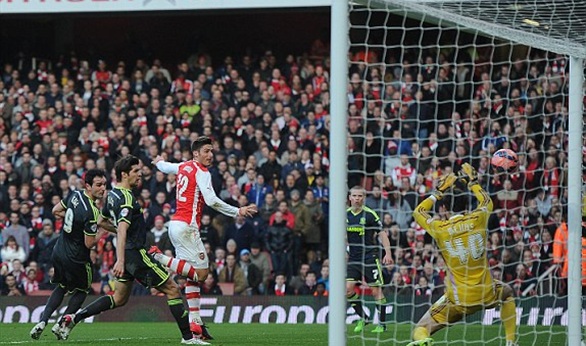 وأنهى أرسنال الشوط الأول لصالحه بالتقدم بهدفين نظيفين أحرزهما أوليفيه جيرو في الدقيقتين السابعة والعشرين والتاسعة والعشرين.