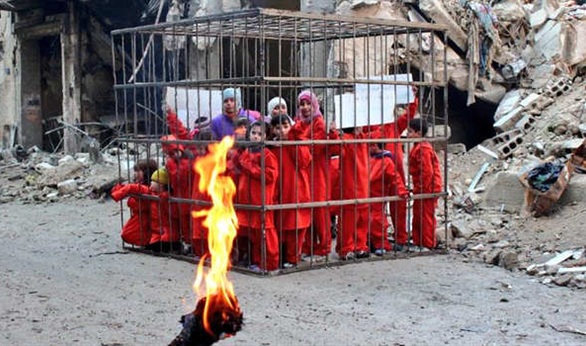 وتتعرض دوما منذ أيام لقصف عنيف من قبل طائرات ومدافع القوات الحكومية السورية الموالية للرئيس بشار الأسد، مما حدا ببعض الأطفال إلى التصوير داخل قفص على وشك الاشتعال، فى اشارة الى الطريقة التى أعدم بها الطيار الأردني معاذ الكساسبة على يد تنظيم داعش، حسب صحيفة "ديلى ستار" اللبنانية.