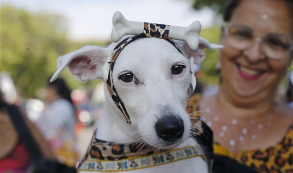 في احتفال في مدينة ريو دي جانيرو البرازيلية، لم يتمكن المحتفلون من رقص السامبا، بل اكتفوا بهز ذيولهم في الحفل وارتداء الملابس المبهجة.