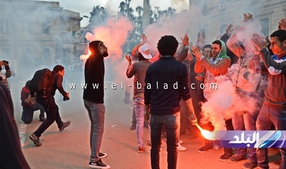 أشعل طلاب الإخوان بجامعة القاهرة الشماريخ أمام قبة الجامعة، وتأهبت قوات الشرطة علي مقربة من دخول الحرم حال اندلاع أحداث عنف وشغب.