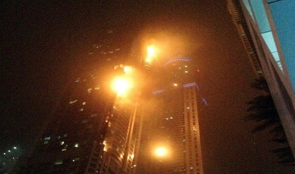 بالفيديو.. اندلاع حريق في أحد أكبر الأبراج السكنية في دبي