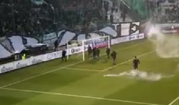 قامت جماهير بانثينايكوس باقتحام الملعب محاولة التعدي على لاعبي أولمبياكوس خلال إجرائهم تدريبات الإحماء قبل مباراة قمة الدوري اليوناني، إلا أن الأمن نجح في السيطرة على الموقف، وقام بالقبض على العشرات من المشاغبين الذين قاموا باقتحام الملعب.