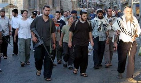 اقتحمت مجموعة من المستوطنين اليهود اليوم الخميس باحات المسجد الأقصى من جهة باب المغاربة، وقاموا بجولات استفزازية وسط حراسة مشددة من قوات الاحتلال الإسرائيلى .