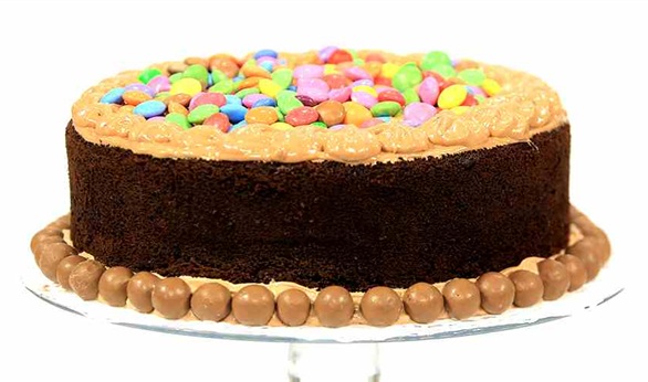 ضعى كريمة مخفوقة مع شوكولاتة قابلة للدهن واخلطيهم وضعيهم فى كيس حلوانى وزينى بها الكيك ثم ضعى الشوكولاتة الملونة على الوجه.