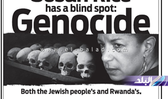 وقد نُشر الاعلان الأول في صحيفة نيويورك تايمز ضد رايس على خلفية انتقادها الحاد لخطاب نتنياهو أمام الكونجرس الأمريكي والذي وصفته بأنه مدمر لنسيج العلاقات بين البلدين. واتهم الاعلان رايس بأنها أغمضت عينيها عن قتل الشعب في رواندا عندما كانت مسئولة عن أفريقيا في مجلس الأمن القومي وفي البيت الابيض تحت قيادة الرئيس كلينتون.