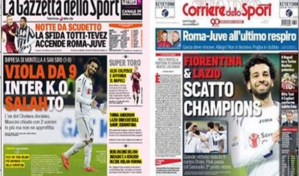 وتصدرت صورة صلاح غلاف معظم الصحف الرياضية وأبرزها لاجازيتا ديلو سبورت ، وكوريري ديلو سبورت.