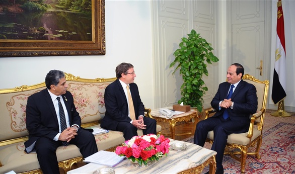 اِلتقى الرئيس عبد الفتاح السيسي، اليوم الأربعاء، بأخيم شتاينر، وكيل أمين عام الأم المتحدة والمدير التنفيذي لبرنامج الأمم المتحدة للبيئة، بحضور الدكتور خالد فهمي، وزير البيئة.