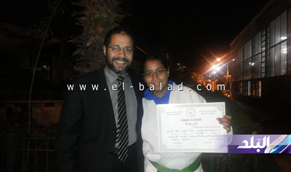 واهدهت يمنى المركز الذى حصدته وشهادة التوفق لوالدها الذى يحرص دوما على تشجيعها ومساندتها فى التدريبات أسوة بتفوقها العلمى.