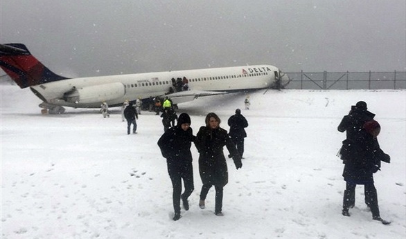 وذكرت دائرة الإطفاء في مدينة نيويورك أن إحدى الطائرات انزلقت عن المدرج في مطار لا جارديا. وأوضحت إدارة الطيران الاتحادية على موقعها الإلكتروني أن مطار لا جارديا أغلق بسبب "حادث لإحدى الطائرات". ولم ترد أي تقارير فورية عن وقوع إصابات.