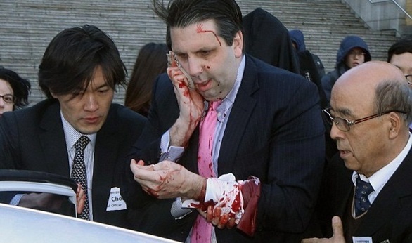 ووصفت وكالة الأنباء المركزية الكورية الشمالية أمس الخميس الهجوم على السفير الأمريكي بأنه "عقاب مستحق" بسبب المناورات العسكرية السنوية التي تجريها الولايات المتحدة مع كوريا الجنوبية وقالت إن الهجوم نفذ "بسكين العدالة".