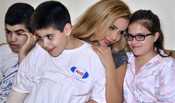 بالصور.. رولا سعد مع عائلة عفيف التى يعانى أبناؤها من مرض نادر